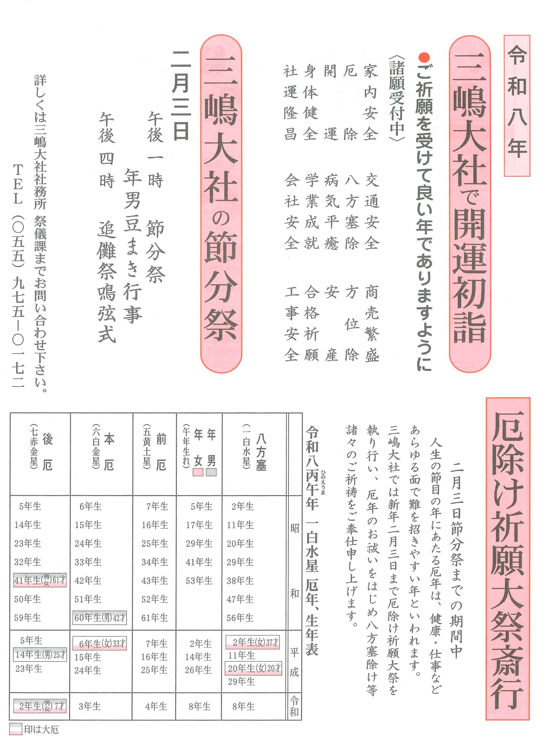 【年末年始 2025-2026】三嶋大社・初詣関連情報(境内案内等)