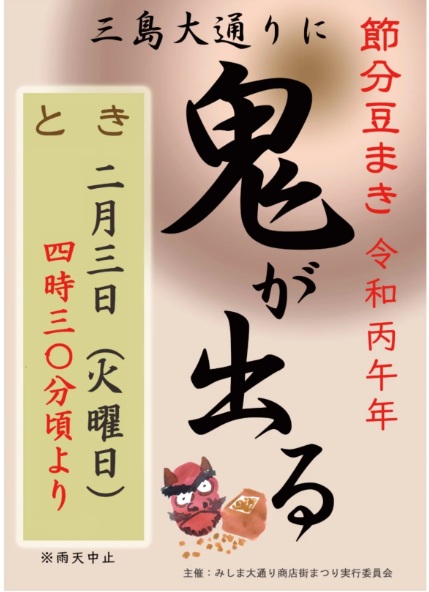 令和丙午(ひのえうま)の節分、三島大通り商店街に「鬼」が現れます!