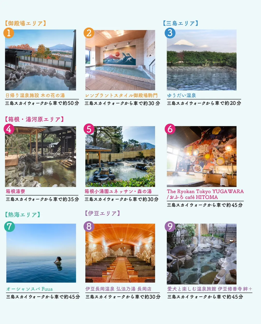 ゆうだい温泉、木の花の湯、箱根湯寮、オーシャンスパ Fuua、修善寺 絆+ ほか全9提携先