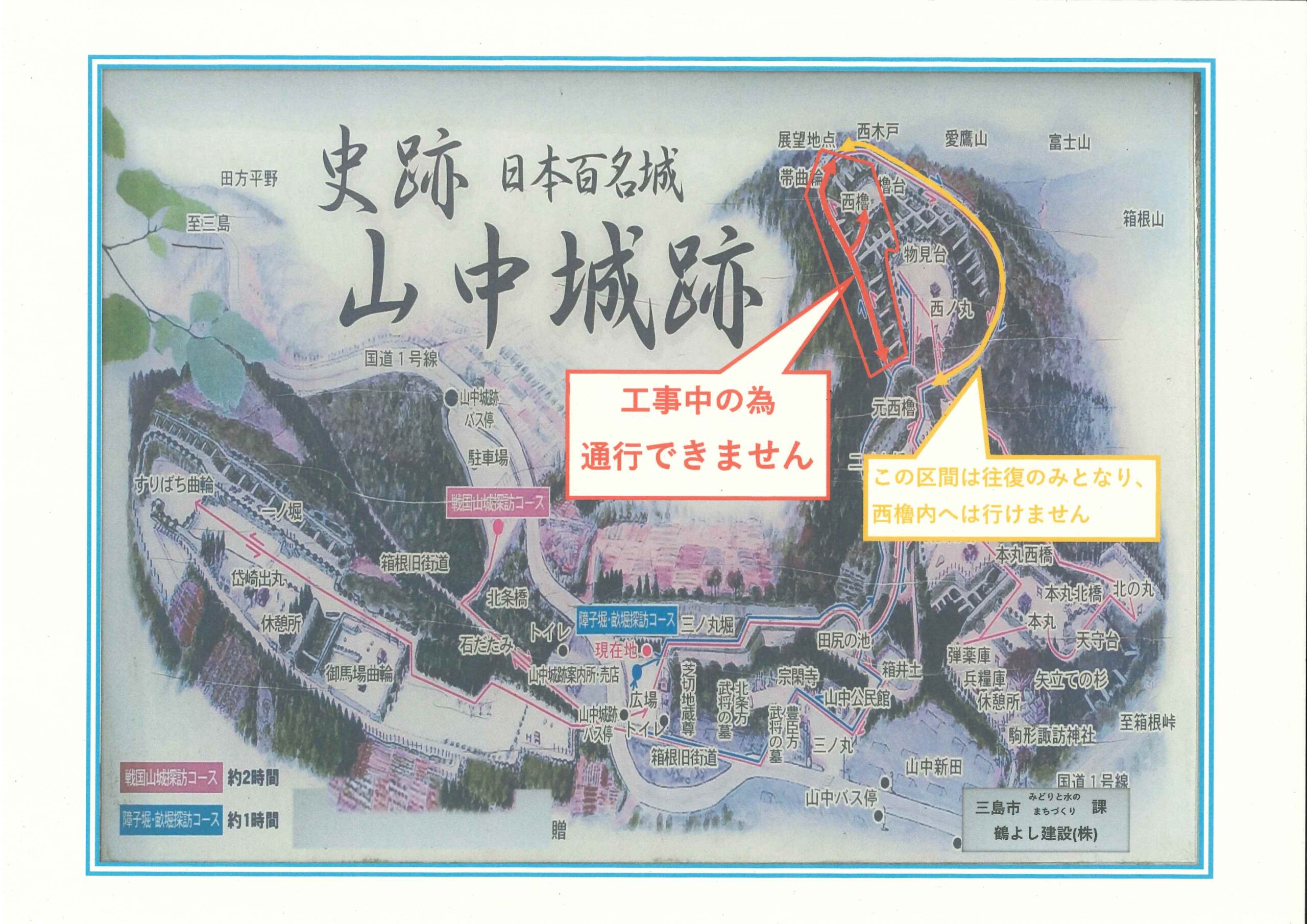 山中城跡公園・工事に伴う公園内の一部通行止めについて